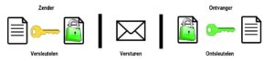 Het versleutelen van een e-mail werkt andersom. De e-mail wordt namelijk versleuteld met de publieke sleutel. Hierna is deze alleen te openen met de privé sleutel. Hierdoor kan alleen de eigenaar van het certificaat deze mail nog ontsleutelen. Dit is dus een goede methode om veilig mail te ontvangen. Belangrijk: dus niet de zender, maar de ontvanger is de eigenaar van het certificaat! Om iemand anders veilig een versleutelde e-mail te kunnen verzenden, moet de ontvanger een certificaat hebben aangeschaft. En het publieke deel van dit certificaat moet dus gedeeld worden met de andere kant.